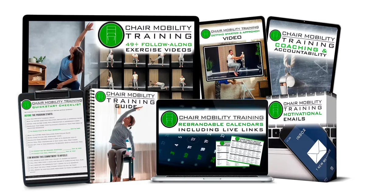 35 Expert-Guided Chair Mobility Exercises Delivered through 15 fully-seated sessions that are easy to follow and easy to stick with. Each one builds toward better daily movement.